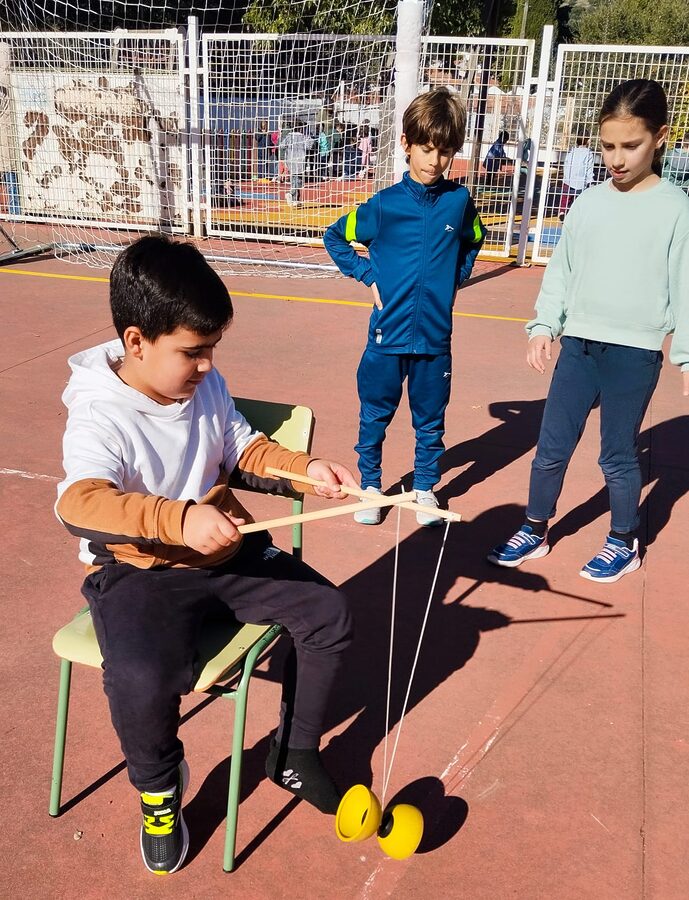 Fue una actividad muy divertida y en la que el alumnado se lo pasó muy bien, aprendiendo a jugar a juegos como el elástico, la taba, el diábolo, la rayuela y el juego del hilo.